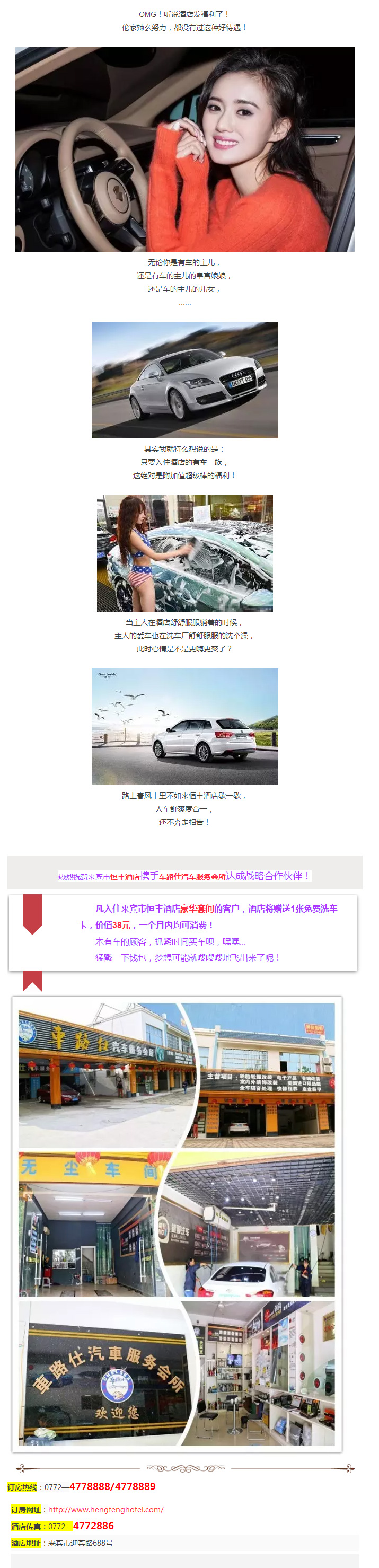 恒豐酒店發(fā)放免費洗車福利,快奔走相告!